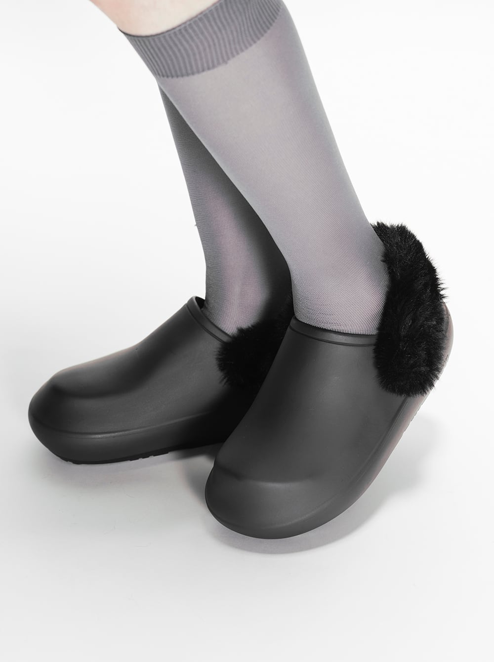 ボリュームのあるファーの質感が、足元をアップグレードします。